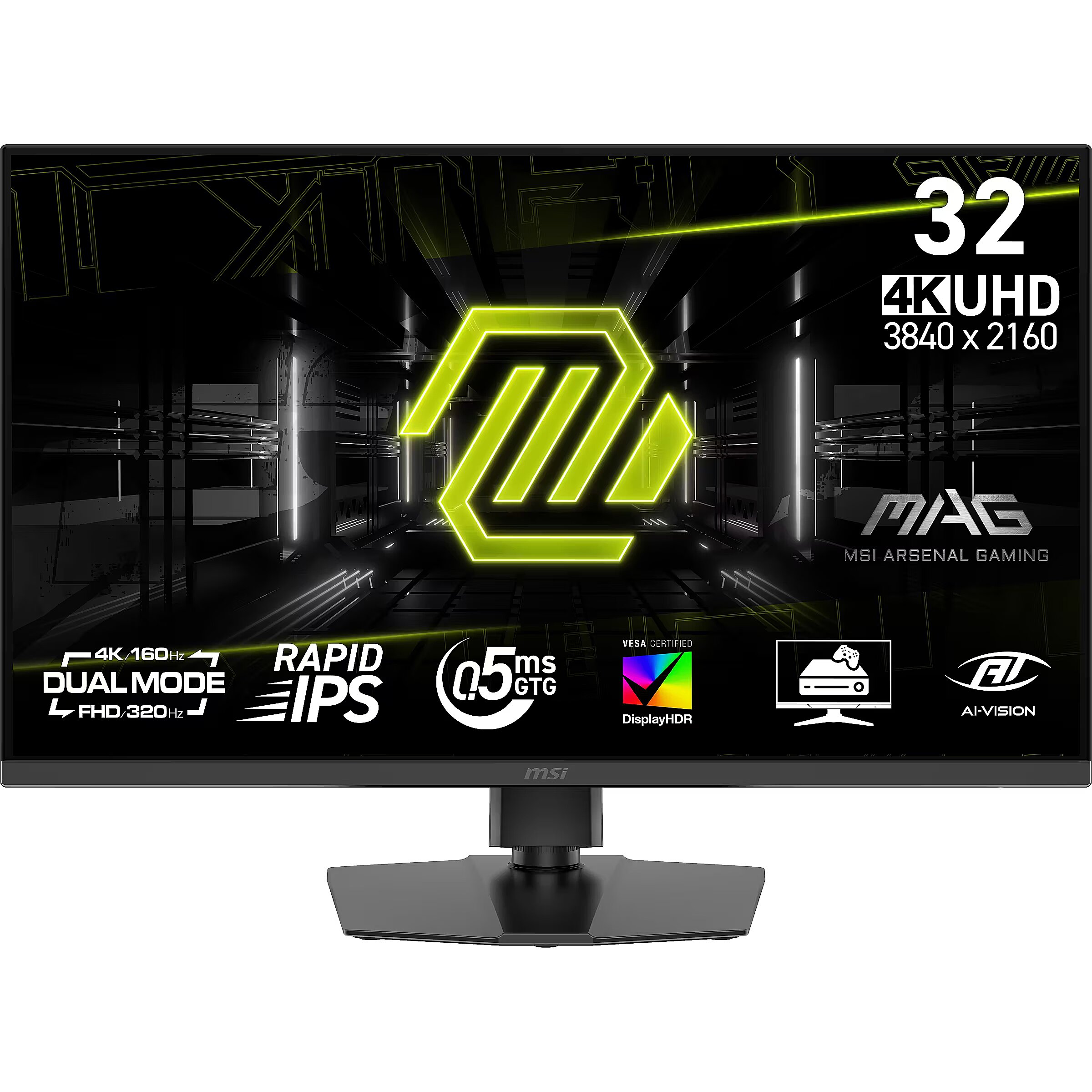 LongDesc - Experience immersive gaming with the MAG 322URDF E16 gaming monitor. Featuring Dual Mode with UHD 160Hz and FHD 320Hz, along with AI Navigator for an enhanced gaming experience, it delivers exceptional performance. Certified with VESA DisplayHDR 400, it refines contrast and shadows for stunning visual clarity. Designed for competitive FPS, first-person RPG/MMORPG, and flight/racing simulators, the MAG 322URDF E16 redefines casual gaming, pushing players to see beyond the game.
