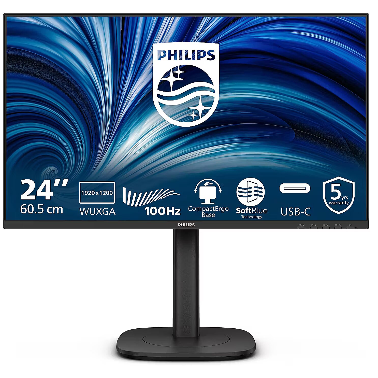 LongSummaryDescription - Philips 3000 series 24B2N3200D/00. Display diagonal: 61.2 cm (24.1"), Display resolution: 1920 x 1200 pixels, HD type: WUXGA, Display technology: LCD, Response time: 4 ms, Native aspect ratio: 16:10, Viewing angle, horizontal: 178°, Viewing angle, vertical: 178°. Built-in speaker(s). Built-in USB hub, USB hub version: 3.2 Gen 1 (3.1 Gen 1). VESA mounting, Height adjustment. Product colour: Black