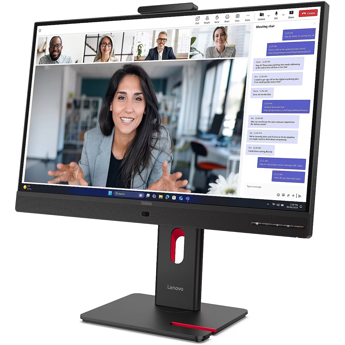 The Swivel technology allows the monitor to be rotated left and right around the vertical axis, ensuring precise screen positioning in relation to the user. Such a design improves the viewing angle, reduces neck strain, and makes the workspace more comfortable for collaboration or material demonstration.