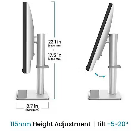 Tilt technology allows for adjusting the screen's slope angle back and forth, ensuring the correct image placement in relation to the user's line of sight. This kind of adjustment helps reduce neck and eye strain, improves image perception, and makes long-term work at the monitor more comfortable.