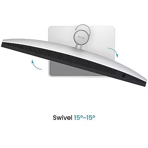 The Swivel technology allows the monitor to be rotated left and right around the vertical axis, ensuring precise screen positioning in relation to the user. Such a design improves the viewing angle, reduces neck strain, and makes the workspace more comfortable for collaboration or material demonstration.