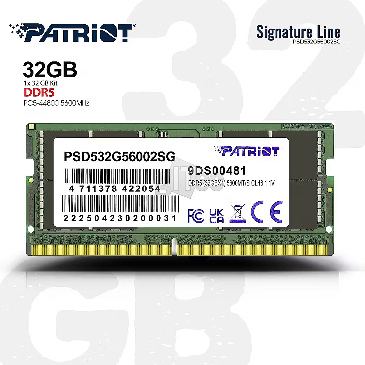 Patriot Signature, SODIMM, DDR5, 32GB, 5600MHz, CL46, Single stick