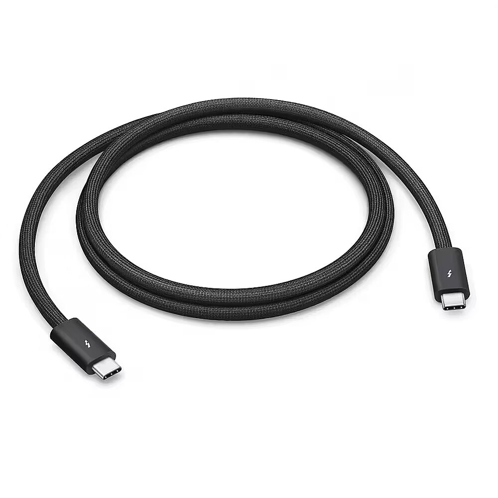 Description - Thunderbolt 5 (USBC) Pro Cable (1m) Featuring a black braided design that coils without tangling, this 1-metre cable supports Thunderbolt 5 data transfer up to 120Gb/s; Thunderbolt 3, Thunderbolt 4 and USB 4 data transfer up to 80Gb/s; USB 3 data transfer up to 10Gb/s; DisplayPort 2.1 video output; and charging up to 240W. Use this cable to connect a Mac with Thunderbolt 3, 4 or 5 (USB-C) ports to Thunderbolt (USBC) and USB displays and devices such as Studio Display, Pro Display XDR, docks and external drives. You can also use this cable to connect iPhone and iPad models with USB-C to your Mac. Transfer data at up to 120Gb/s USB 4 data transfer at up to 80Gb/s DisplayPort 2.1 video output (UHBR20) Connect to Thunderbolt (USB-C) and USB devices and displays Up to 240 watts of power delivery Braided design that coils without tangling Passive cable Thunderbolt logo helps it stand out from other cables Daisy-chain up to six Thunderbolt (USB-C) devices