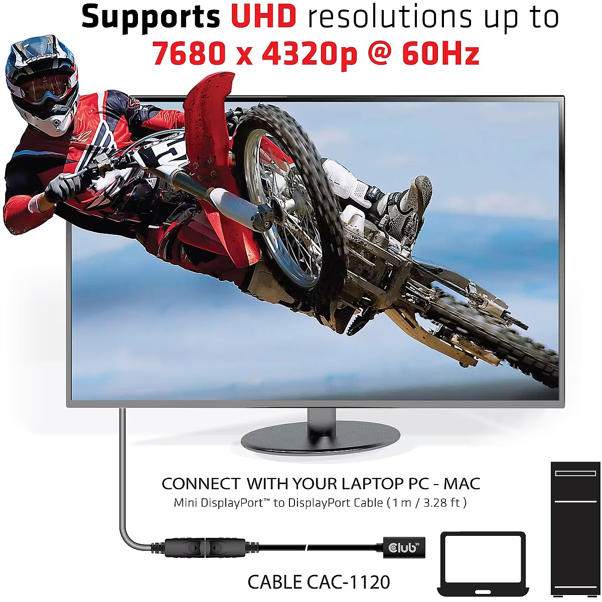 ShortSummaryDescription - CLUB3D Mini DisplayPort 1.4 to DisplayPort Extension Cable 8K60Hz DSC 1.2 HBR3 HDR Bidirectional F/M 1m/3.28ft, 1 m, Mini DisplayPort, DisplayPort, Female, Male, 7680 x 4320 pixels