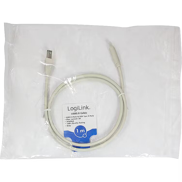 ShortDescription - kabel LogiLink USB 2.0 B - USB-C 1m szary