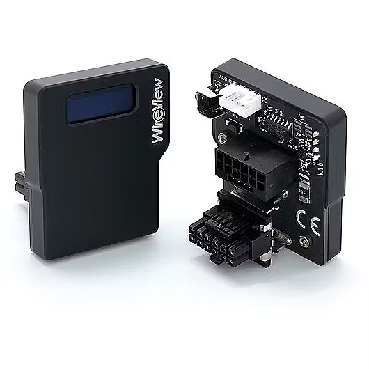 Technical_details - Thermal Grizzly's WireView GPU is a device for measuring the power consumption of GPUs. It plugs into the 12VHPWR power connectors on the graphics card and is connected to the power supply via the power cables. The OLED display shows power consumption data. You can switch between the displayed values at the push of a button. At the same time, the WireView GPU takes on a cable management function because its “U” shape allows for optimized cable routing. The PCIe power cables are connected to the WireView GPU in such a way that they can be routed neatly over the backplate of the graphics card. This avoids cable bulges when laying power cables and simplifies cable management. Item no.: 100031617 Type measuring device Color: Black EAN 4260711990762 Manufacturer no. TG-WV-H1N Intended use For measuring the power consumption of graphics cards Mains connection operating mode Display/Display Current power consumption in watts [W], current voltage in volts [V], current current in amperes [A], minimum and maximum power consumption in watts [W], average power consumption over 60 seconds [AVG W] and total power consumption [ E] DC voltage measurements Calculation of energy consumption More Information The WireView GPU is available in "N" and "R" versions. "N" stands for the normal orientation of the PCIe connectors on the PCIe expansion card, "R" for the rotated (reversed) orientation. In the normal orientation (N), the connector retaining bracket faces away from the expansion card PCB. In the rotated orientation (R), the connector retaining clip faces the PCB.
