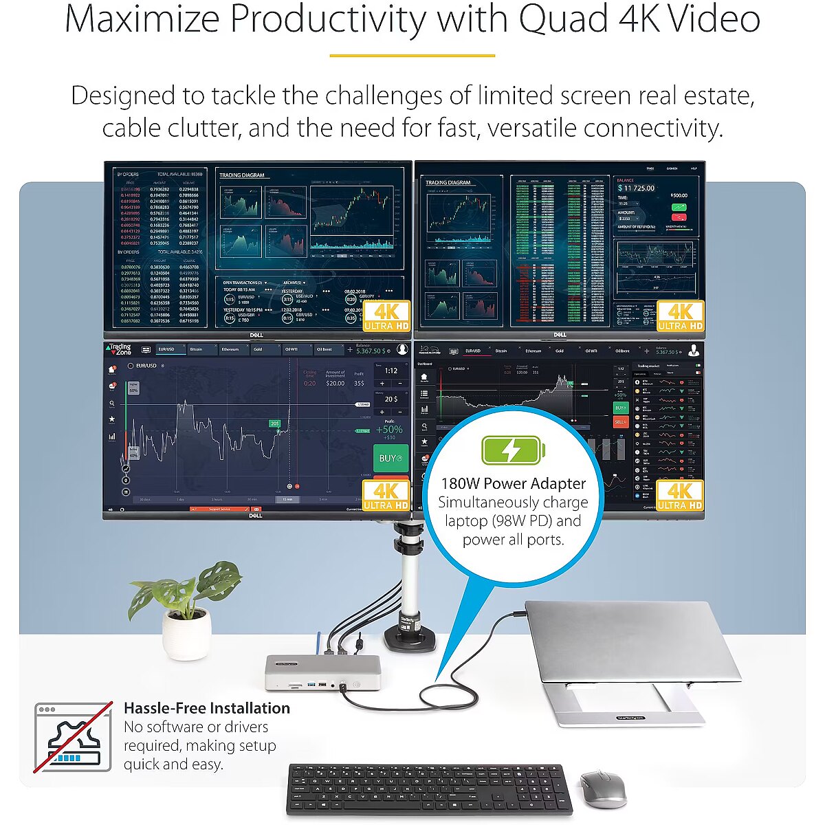 Title - StarTech.com Universal USB4 & Thunderbolt 4 Docking Station, Quad Display on Windows, Dual Display on MacBook, HDMI DP Dock with 98W Laptop Charging