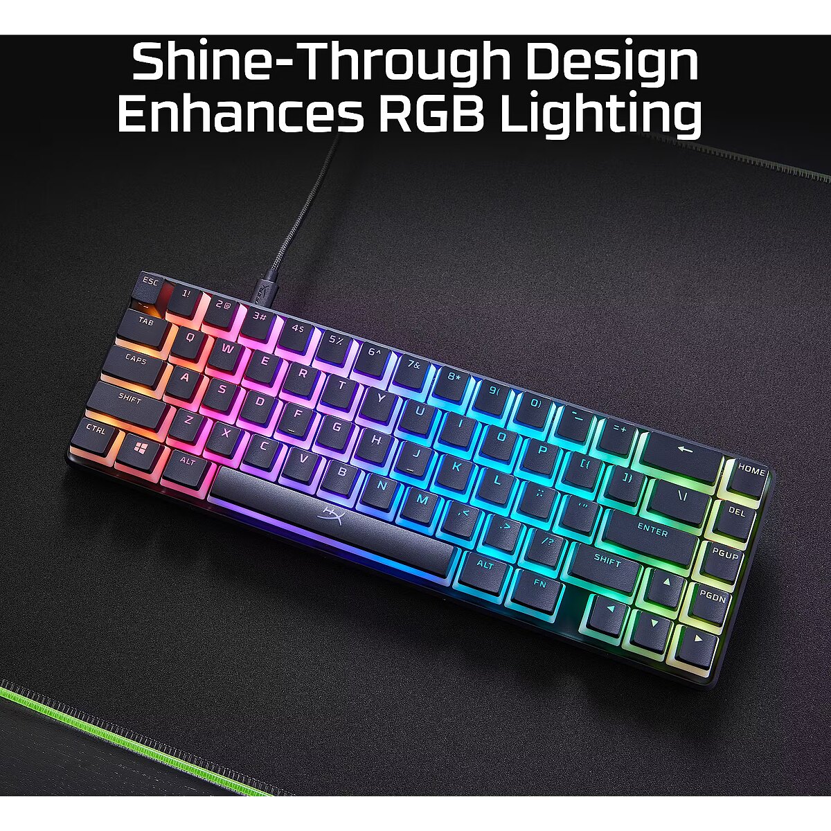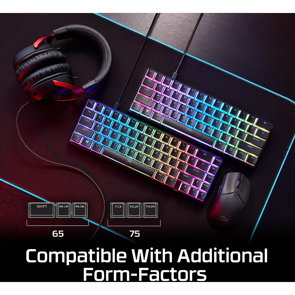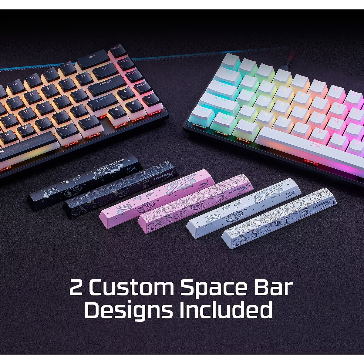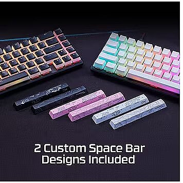 LongDesc - Boost your Keyboard’s Brilliance!HyperX Pudding Keycaps 2 feature a translucent dual-layer style and our signature HyperX font, both of which are designed to provide extra brilliance. These double shot PBT keycaps are thick, durable, and resistant to the “shine” that keycaps can develop over time. This set of keycaps also includes special keycaps for 65% and 75% form-factor keyboards, as well as 2 custom-designed space bars. The full key set is compatible with HyperX and most other mechanical gaming keyboards and includes a HyperX keycap removal tool for easy installation.