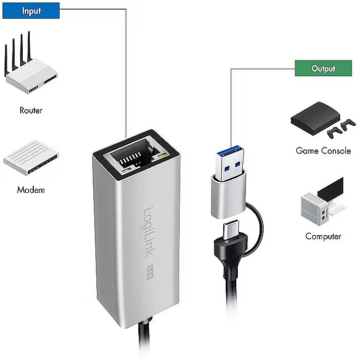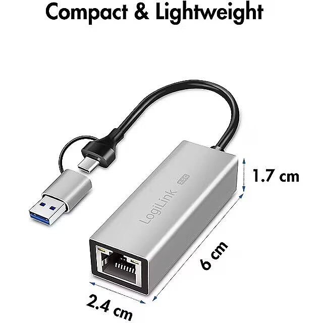 Logilink USB-A/-C to 2,5G Ethernet adapter, gray