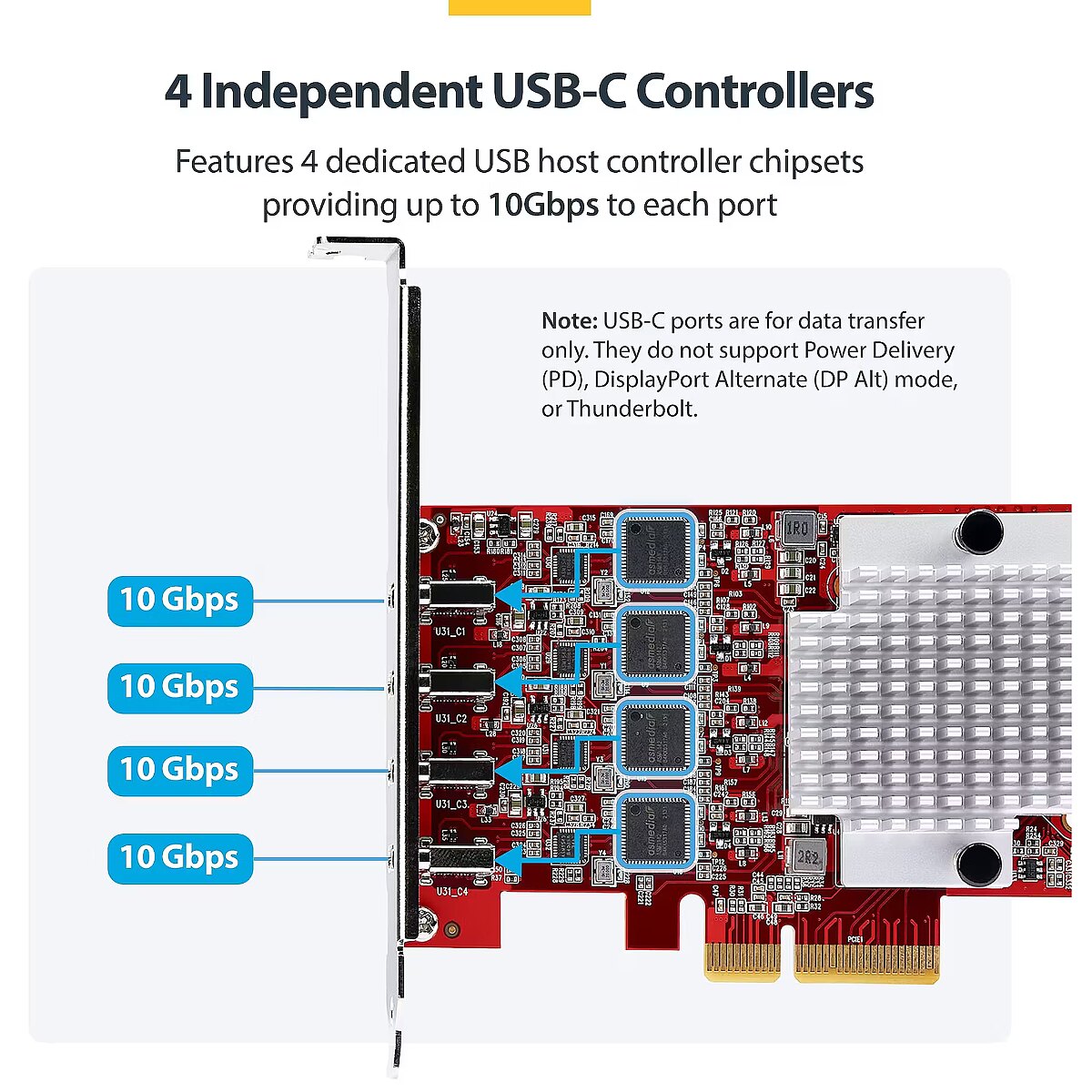 Title - StarTech.com 4-Port USB Type-C PCIe Card, USB 3.2 10Gbps, USB-C PCI Express Expansion Card, 4x Independent USB Controllers, Windows/Linux/macOS, TAA-Compliant