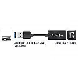 Name - DeLOCK USB 3.1 with USB A St> RJ45 Bu black - 10/100/1000 Mbps compact