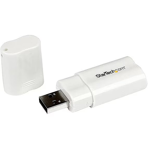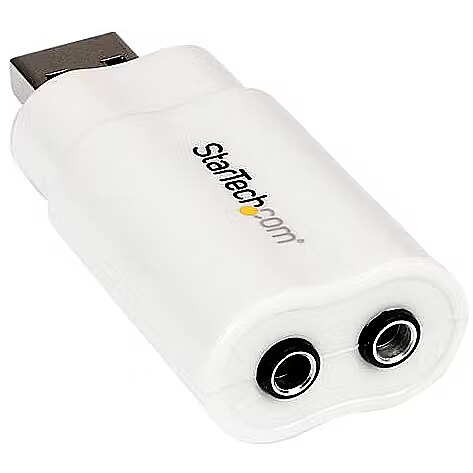 LongSummaryDescription - StarTech.com USB to Stereo Audio Adapter Converter. Host interface: USB, Headphone connectivity: 3.5 mm. Chipset: C-Media CM108AH, Product colour: White, Certification: RoHS, CE, FCC, TAA. Windows operating systems supported: Windows 10, Windows 10 Education, Windows 10 Education x64, Windows 10 Enterprise, Windows 10..., Mac operating systems supported: Mac OS X 10.10 Yosemite, Mac OS X 10.11 El Capitan, Mac OS X 10.12 Sierra, Mac OS X 10.13 High.... Weight: 14 g, Width: 27 mm, Depth: 62 mm. Number of products included: 1 pc(s), Server operating systems supported: Windows Server 2012, Windows Server 2012 R2, Windows Server 2016, Windows Server 2019, Housing material: Plastic