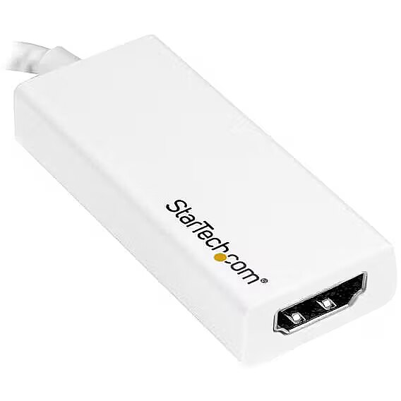 LongSummaryDescription - StarTech.com USB-C to HDMI Adapter with 4K 30Hz - White. USB connector type: USB Type-C, USB connector gender: Male, USB connector form factor: Straight. Product colour: White, Housing material: Plastic. Width: 23 mm, Depth: 147 mm, Height: 9 mm. Package width: 225 mm, Package depth: 221 mm, Package height: 12 mm. Products per master (outer) case: 120 pc(s), Master (outer) case width: 335 mm, Master (outer) case length: 502 mm