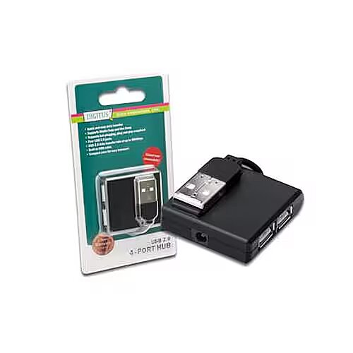 Description - Hub DIGITUS "Tiny", USB 2.0 o 4 portach umożliwia jednoczesne podłączenie do 4-rech urządzeń USB do PC lub Mac.