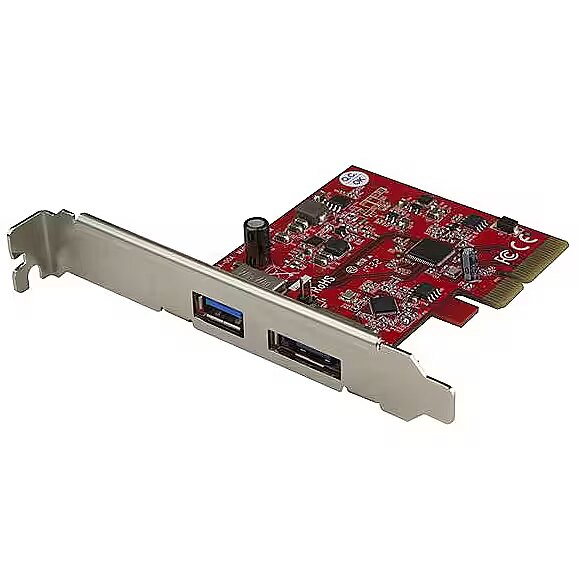 ShortSummaryDescription - StarTech.com 2-Port USB 3.1 (10Gbps) and eSATA PCIe Card - 1x USB-A and 1x eSATA, PCIe, eSATA, PCIe 3.0, Red, CE, FCC, TAA, REACH, ASMedia - ASM2142, ASMedia - ASM1351