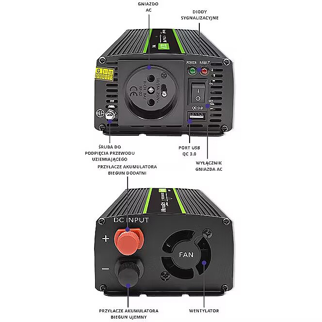 Name - Qoltec Przetwornica napięcia Monolith | 600W | 1200W | 12V na 230V | Czysty Sinus
