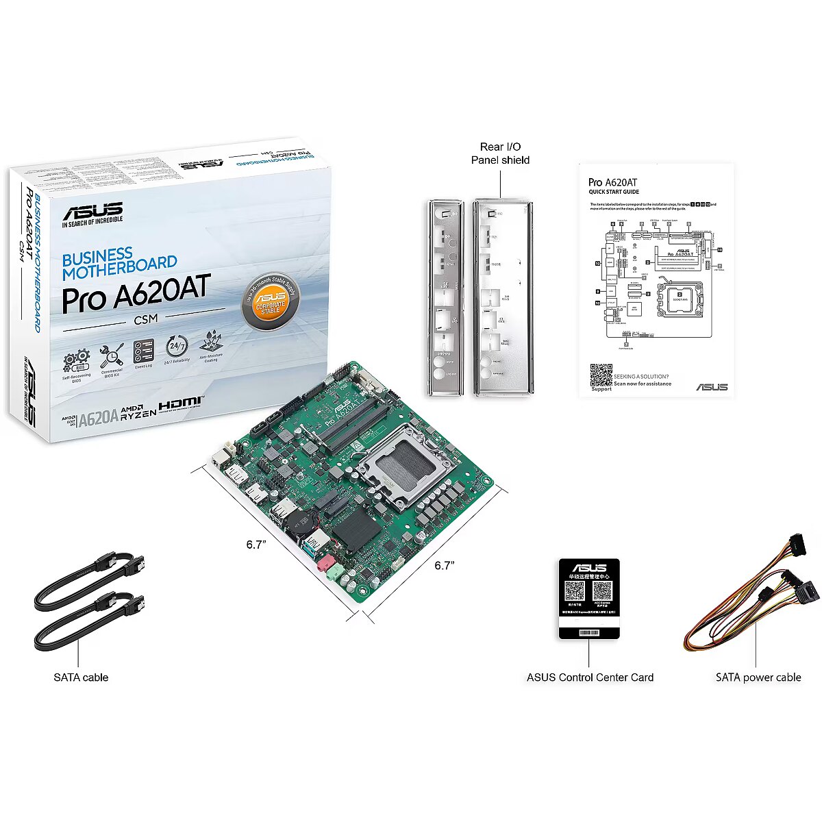 LongProductName - PRO A620AT-CSM Business Motherboard Socket AMD AM5 (Thin Mini-ITX, PCIe 4.0 M.2, DDR5 SO-DIMM, Q-LED Core, COM Debug Header, Control Center Express)