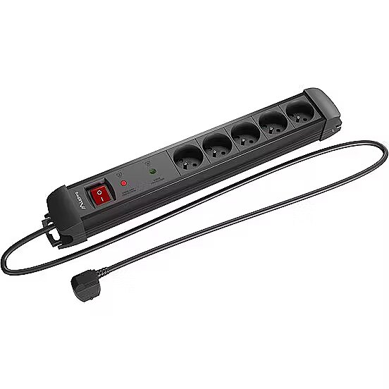 Description - Surge Protector Power Strip with Varistor Lanberg SP1-05E-0300-BK Discover the next generation of protection for your electronic equipment with the Lanberg SP1-05E-0300-BK surge protector power strip. Equipped with advanced protection technologies, this premium strip with a 3m cable provides effective protection for all connected electrical devices. With a 10A fuse, three varistors with a total energy absorption of 555J, the Lanberg strip is the perfect solution for anyone who values safety and reliability. Provide yourself with a high degree of surge protection against storms or disruptions in the electrical network, preventing failures in your home, office or workshop. 5 sockets with 10 A fuse The Lanberg SP1-05E-0300-BK power strip uses a 10 A fuse with a maximum load of 2500 W and an extremely fast response time of only 10 nanoseconds. This short-circuit protection function guarantees immediate response to any dangerous changes in current flow, protecting your devices and the electrical network from potential damage. The power strip has, among other things, an illuminated safety switch, five grounded power sockets and built-in current path shutters. The LED informs the user about the current protection status, which is a practical addition that increases the functionality of the Lanberg power strip. Surge protector with varistor When choosing a surge protector power strip, it is worth paying attention to whether it is equipped with mechanisms that effectively reduce surges. Each surge protector with a varistor has a higher degree of protection than a standard extension cord, but the Lanberg SP-1 filter strip provides an above-average response to voltage surges. The advanced surge protection functions in the Lanberg SP1-05E-0300-BK strip are the result of using three varistors with a total energy absorption of 555 J. Thanks to this, the SP1 surge protector effectively protects against dangerous voltage surges in the network, protecting not one, but all three lines (G-N, G-L, N-L). A surge protector with many functions In addition to high-class surge and short-circuit protection, the Lanberg SP1-05E-0300-BK strip also offers a number of practical conveniences, adapted to various applications. Child protection of sockets is a market standard that provides additional safety for the youngest users. Integrated mounting holes allow easy installation of the strip in both vertical and horizontal position on the wall or furniture. In addition, the well-thought-out design of the strip allows you to conveniently roll up the unused cable around it and conveniently connect power supplies and other devices, avoiding tangled cables. What does a surge protector power strip give you? Buying the Lanberg SP1-05E-0300-BK surge protector is the best investment in protecting your sensitive electronic devices. Desktop computers, servers, TVs, hi-fi audio equipment and other similar devices are particularly vulnerable to damage caused by voltage fluctuations. With the Lanberg SP-1 surge protector, you can enjoy the safety and peace of mind of knowing that your valuable devices are protected against unforeseen events in the power grid and, for example, short circuits during charging. In our offer you will find a wide selection of products with different cable lengths, number of sockets and other parameters.