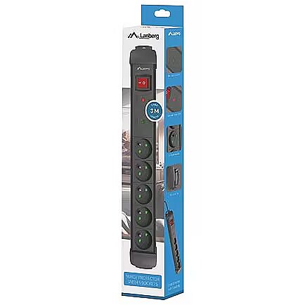 ShortDescription - Listwa zabezpieczająca Lanberg SP1 5 gniazd PL 3.0m czarna