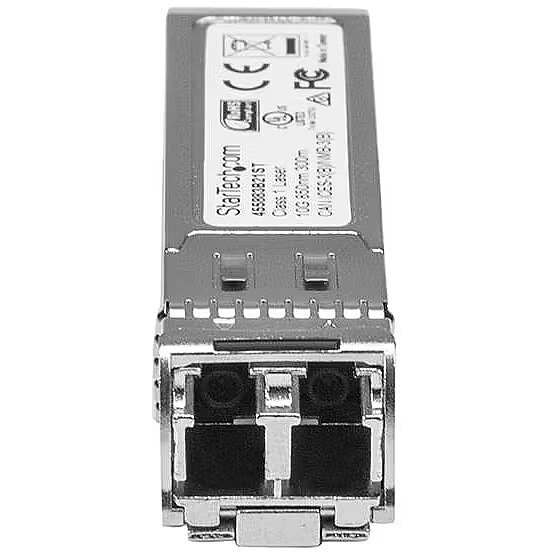 LongSummaryDescription - StarTech.com 10 Gigabit Fiber SFP+ Transceiver Module - HP 455883-B21 Compatible - MM LC with DDM - 300 m~HPE 455883-B21 Compatible SFP+ Module - 10GBASE-SR - 10GbE Multi Mode Fiber Optic Transceiver - 10GE Gigabit Ethernet SFP+ - LC 300m - 850nm - DDM HPE 6120XG, 6120G, Flex Fabric. SFP transceiver type: Fiber optic, Maximum data transfer rate: 11100 Mbit/s, Interface type: SFP+. Product colour: Silver, Housing material: Aluminium, Mean time between failures (MTBF): 3068049 h. Power consumption (typical): 1 W. Compliance certificates: RoHS, Certification: CE, FCC, UL, TAA, UR. Width: 13.3 mm, Depth: 57 mm, Height: 8.9 mm