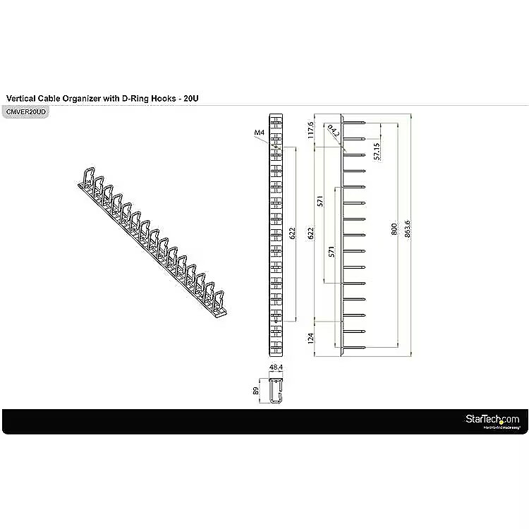 Title - StarTech.com Vertical Cable Organizer with D-Ring Hooks - 0U - 2.8ft.