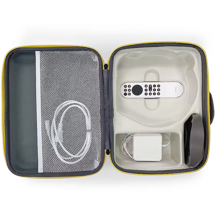 LongDesc - Sicherer Transport deines BenQ GV31Customized ProtectionCrafted to secure your GV31 projector, this stylish case guarantees easy portability wherever you're off to.Stay OrganizedEngineered with purposeful compartments, it not only shields your projector but also neatly arranges accessories like the remote control and power bank in its half-mesh pocket.Modern MinimalismPrecise stitching, premium materials, and an artful interior lining unite to deliver unmatched protection for your travel and storage necessities.