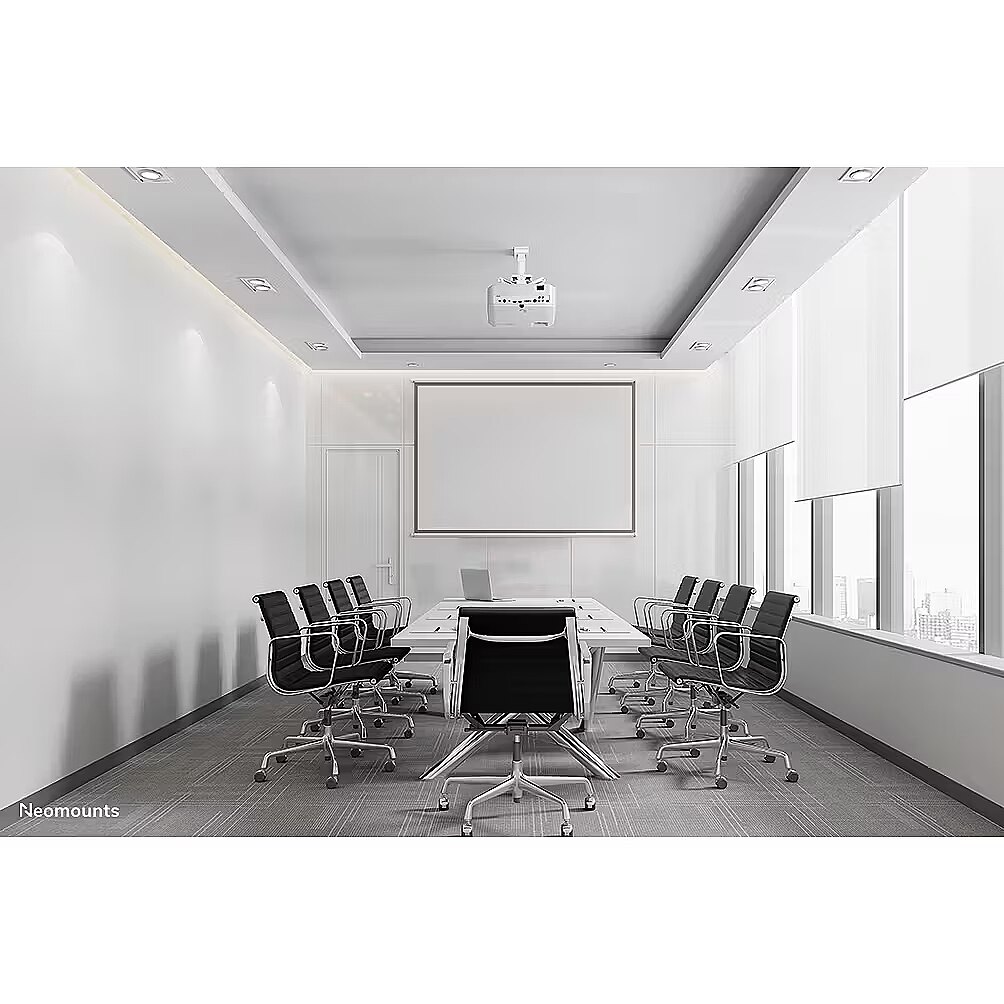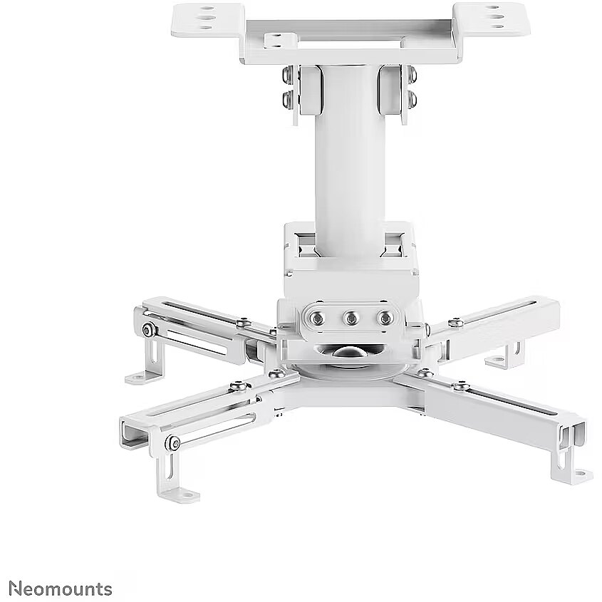 Description - Projector ceiling mount CL25-530WH1 The Neomounts CL25-530WH1 is a universal ceiling mount for a projector. Due to its high load capacity of up to 45 kg and various adjustment options, this projector ceiling mount has a wide range of applications. The CL25-530WH1 has four extendable arms and universal tilt (+20°, -20°), rotation (360°) and swivel (+8°, -8°) technology, ensuring optimum projection placement on any canvas, screen or wall.
