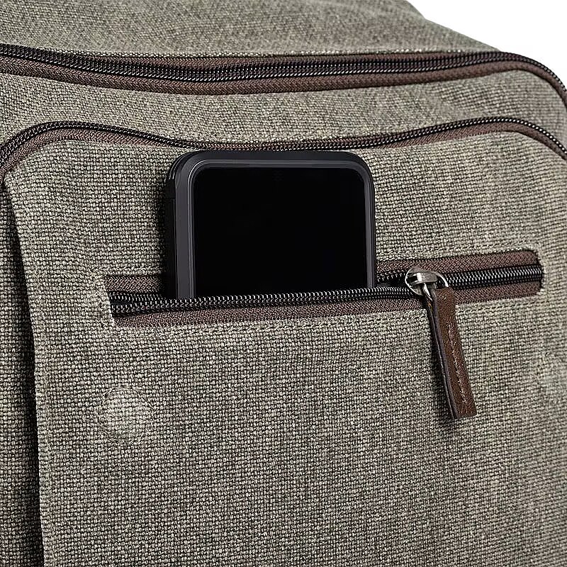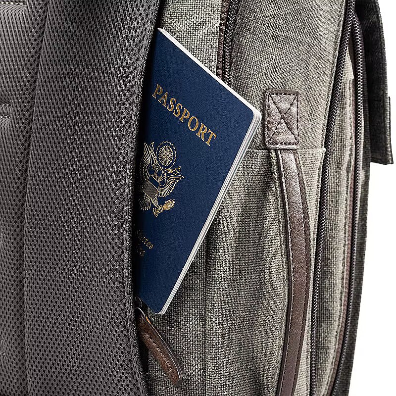 description_en - The Retrospective EDC is an “Everyday” backpack designed for commuters, travelers, and anyone who carries a laptop and essential accessories on a daily basis. Constructed with our distinguished stone-washed cotton canvas, two-tone liner, and genuine leather trim, the Retrospective EDC backpack offers versatile functionality, style and durability. The backpack features a padded laptop compartment, sectional main compartment, and deep front organizer pocket for maximum carry, yet with a slim profile. On-the-go commute and carry-on friendly Top opening for quick access to all compartments Slim profile eases maneuverability through crowds Quick-flip magnetic flap covers zippers for security and weather protection Stone-washed, weather-treated, 100% cotton canvas exterior with two-tone twill interior liner Genuine leather trim and zipper pulls Lockable YKK® zippers on all compartments Dedicated, padded laptop compartment fits a 16” Macbook Pro Main compartment sized to fit a pair of shoes, water bottle, and light jacket Main compartment features two mesh pockets and a Letter/A4-sized dedicated sleeve Deep, pleated front pocket with organizer panel, zippered interior pockets, and key lanyard Zippered phone pocket lined with microfiber fits plus-sized phones with cases Hidden phone/passport pocket in the back panel protects against thieves and allows you to feel phone vibration alerts Plush harness system with wrap-around air mesh-covered foam and removable sternum strap for all-day comfort Comfort-padded back panel Luggage handle pass-through (combine with top grab handle for extra stability) Three leather-trimmed grab handles on top and both sides for overhead bin and other transportation storage Water-resistant coating on all materials Seam-sealed rain cover included What fits in this bag? Laptop Sleeve: 16” Macbook Pro, 15” Wacom tablet Main Compartment: light jacket, commuter or workout shoes, letter-sized documents Front Organizer Pocket: EDC tech, personal, electronics Phone Pocket: plus-sized phones with protective case Hidden Pocket: passport or plus-sized phones with protective case