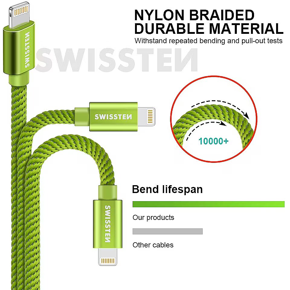 title_en - Swissten Textile Fast Charge 3A Lightning Data and Charging Cable 2m