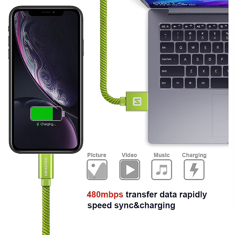 description_en - High quality textile data cable USB / Lightning with length of 2,0 m. The cable reinforced to deliver a higher current (up to 3A) and can handle fast 480 Mb/s data transfer. Packed in Swissten retail pack.