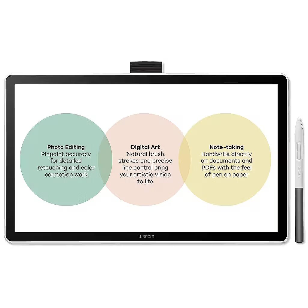 Uus Wacom One pakub avarat 14-tollist Full HD ekraani, mis annab rohkem ruumi digitaalset kunsti, fototöötlust ja märkmeid ellu viia. Selle ekraan vähendab parallaksi ja muudab pliiatsi juhtimise täpsemaks. Matt, peegeldust vähendav ja sõrmejäljekindel pind pakub loomulikku, paberilaadset tõmmet igal joonel. Lihtne seadistamine, sujuv töövoog