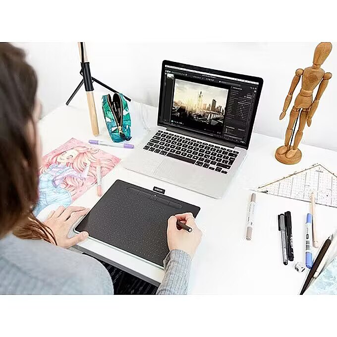 Wacom Intuos teeb loovteekonna alustamise lihtsaks ka tänu rikkalikule kaasas olevale tarkvaravalikule. Iga loominguline töövoog leiab siit midagi sobivat – alates digimaalimisest kuni fototöötluse, illustratsioonide ja õppimiseni: Boris FX Optics – 1-aastane litsents Clip Studio Paint Pro – 2-aastane litsents Corel Painter Essentials 8 – 90-päevane prooviversioon Corel AfterShot Pro 3 – 90-päevane prooviversioon Skylum Luminar Neo – 3-kuuline ligipääs Skillshare – 3-kuuline liikmelisus Concepts – 3-kuuline prooviversioon