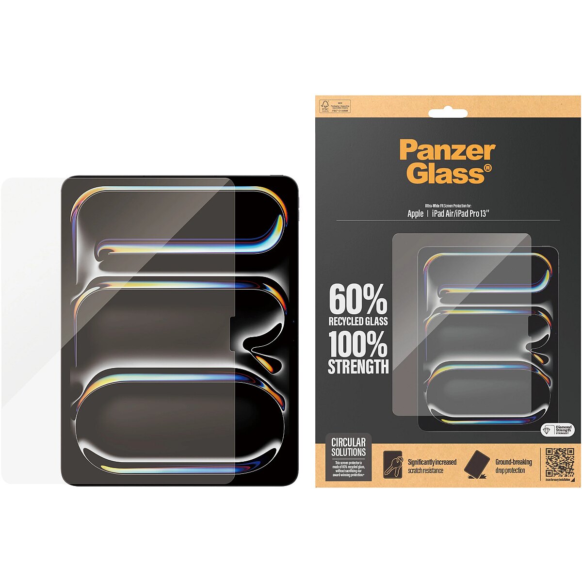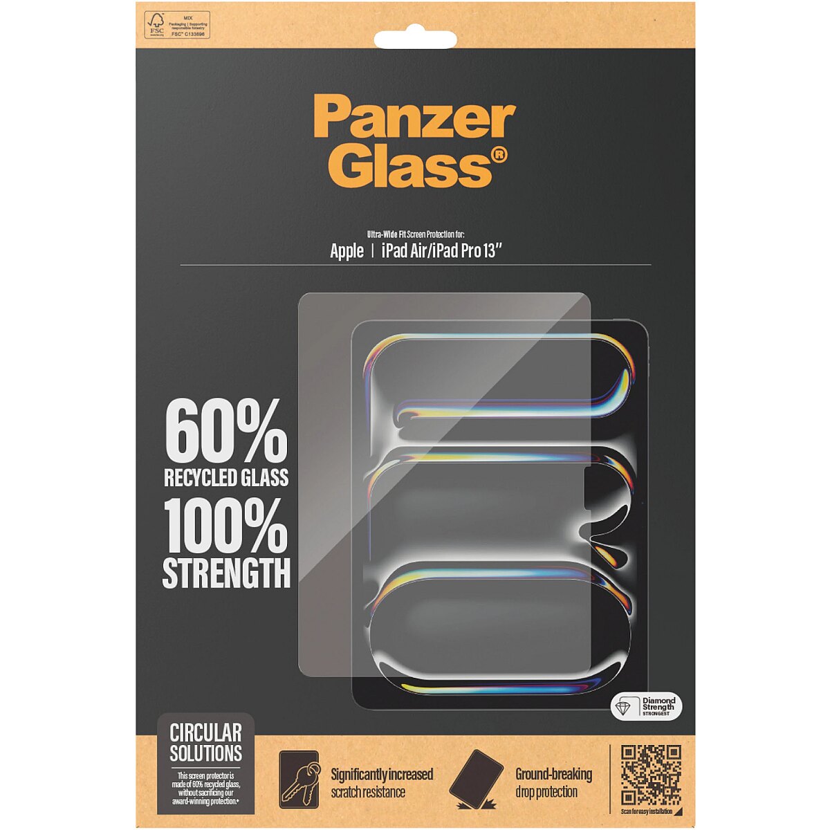 LongSummaryDescription - PanzerGlass ® Screen Protector iPad Air 13'' (2025-2024) | iPad Pro 13'' (2025-2024) | Ultra-Wide Fit. Brand compatibility: Apple, Compatibility: Apple - iPad Pro 13" (2025), Apple - iPad Pro 13'' (2024), Apple - iPad Air 13" (2025), Apple -.... Dry application. Protection features: Scratch resistant, Shock resistant. Material: Tempered glass, Polyethylene terephthalate (PET), Silicone, Product colour: Transparent. Quantity per pack: 1 pc(s)
