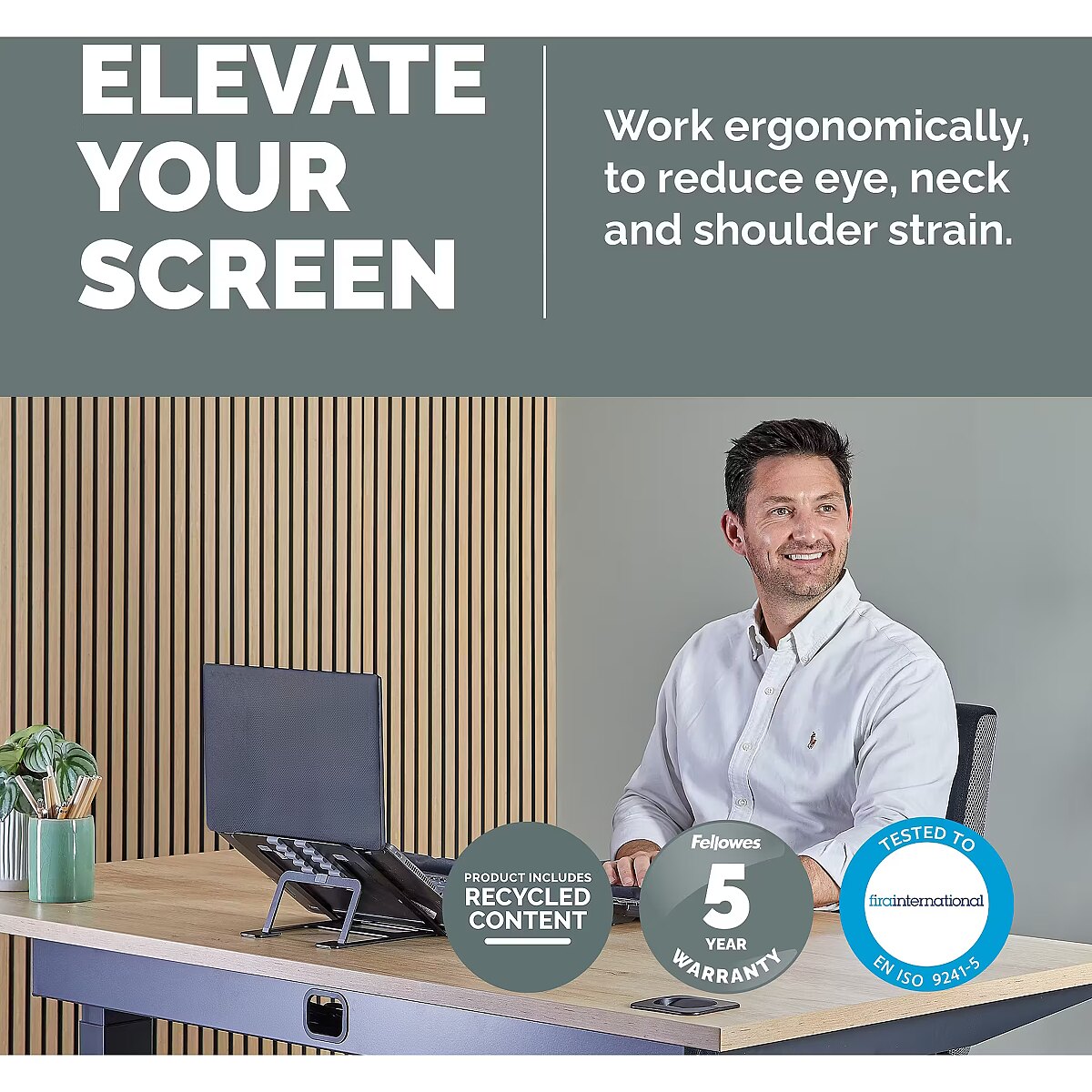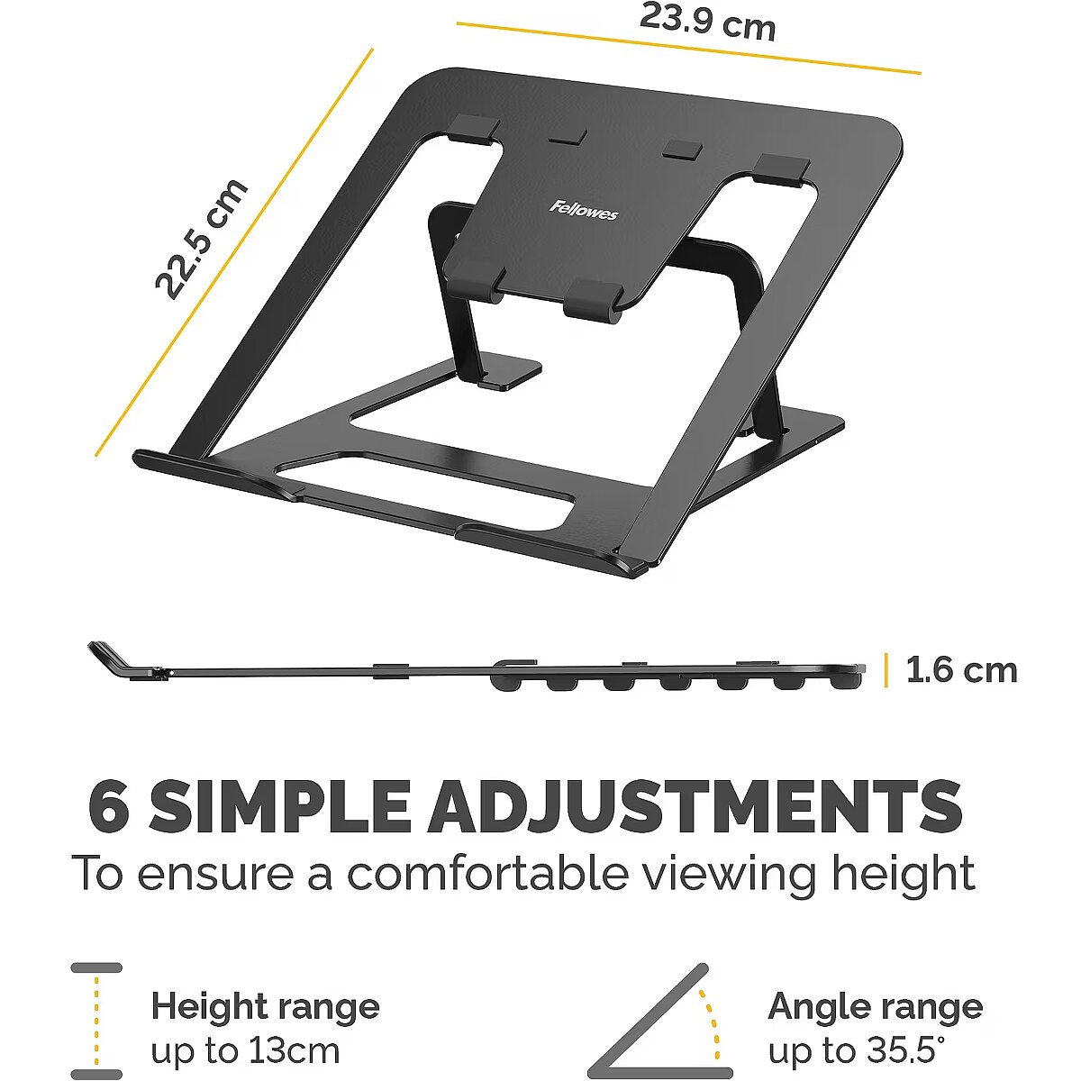Title - Fellowes Alumia Laptop Riser Portable Laptop Stand Max Size 15 inch Max Weight 5kg Black