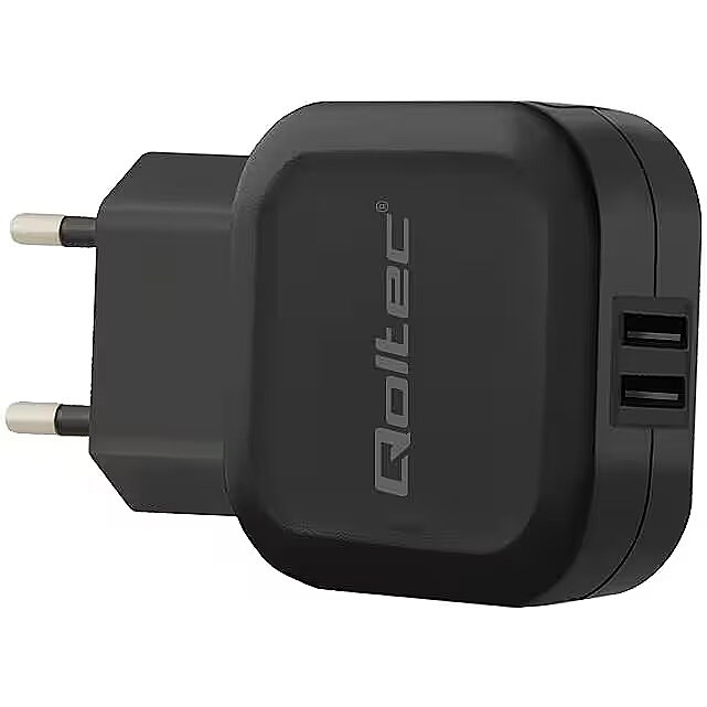 Qoltec mains charger with a maximum power of 3.4A. Made with attention to every detail. It has a built-in double USB socket.