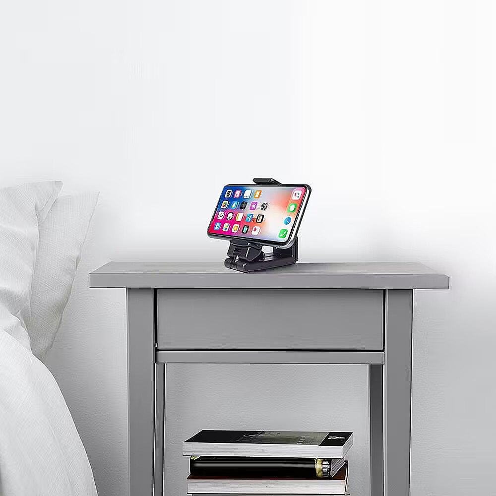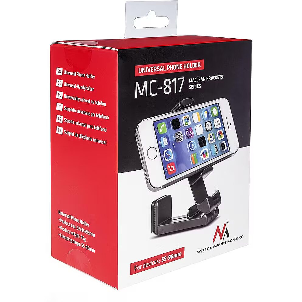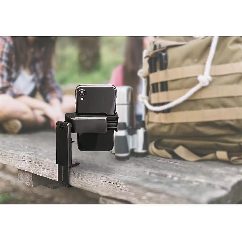 Practical and universal mobile phone holder for devices from 56 to 96 mm wide Handle with a special attachment for fixing eg to the edge of the table Universal for use in the car, at home, on trips and in many other places It can also be used as a mobile phone stand - ideal for a desk / bedside table It was created for watching movies, playing games, listening to music, making video calls, making calls to friends and using the Internet Adjustable slope for optimal viewing angle Small, foldable and compact - small enough for any bag, purse or pocket