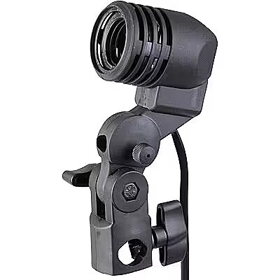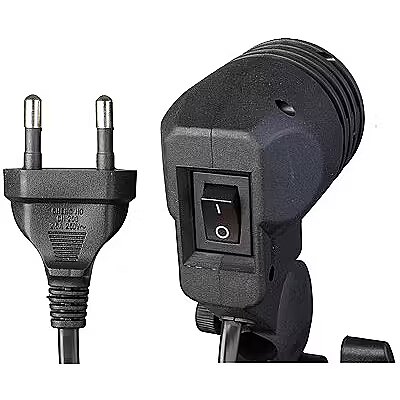 description_en - With this lightweight plastic socket with E27 thread and adjustable tilt, you can easily align the light optimally - in combination with a daylight lamp or a suitable flash bulb. The frame also has a holder for studio umbrellas. Especially beginners in creative studio lighting can easily create great highlights. A holding option on the lamp holder on the spigot adapter of light stands makes attachment very easy. A 3 m connection cable gives you a very large radius of action. The toggle switch on the back of the socket allows the light source to be switched on and off quickly. The socket has a maximum load capacity of 60 W power consumption. Universal lamp holder E27 socket Integrated umbrella holder Comfortable switch 3 m power cord