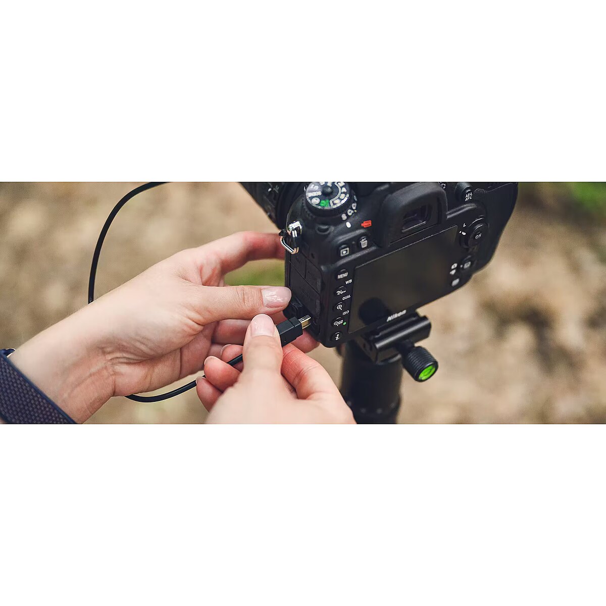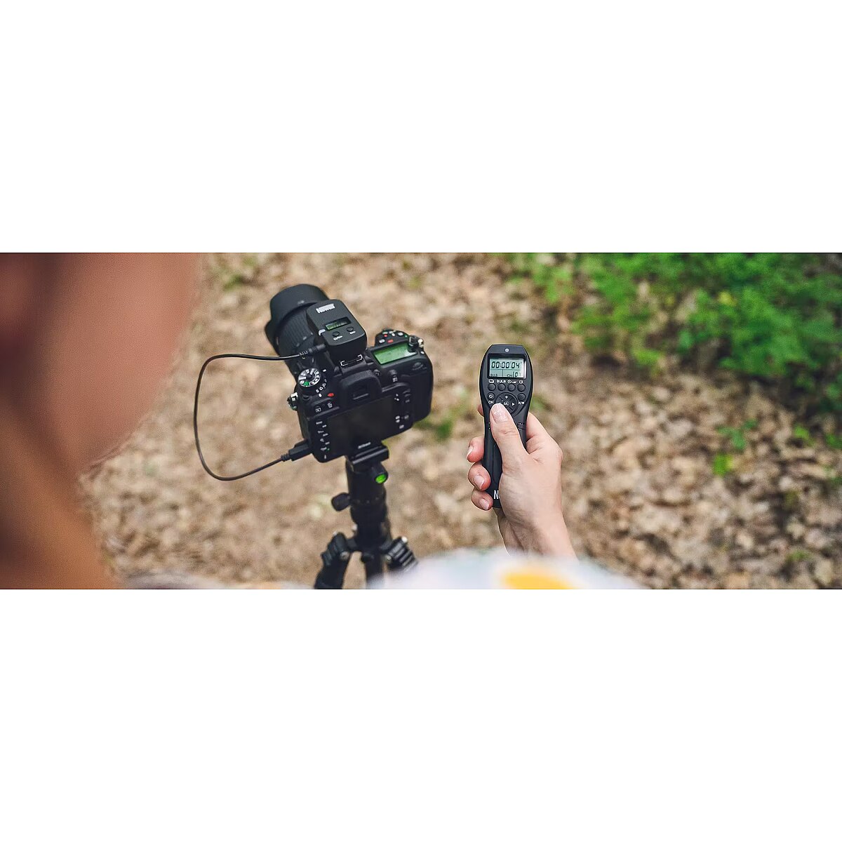 The device operates at a 2.4 GHz radio frequency, offering a range of up to 100 meters and a stable connection. You are no longer limited by the length of the cable or terrain obstacles. Leave the camera in a forest clearing, for example, and release the shutter conveniently from your car. Also usable with a cable
