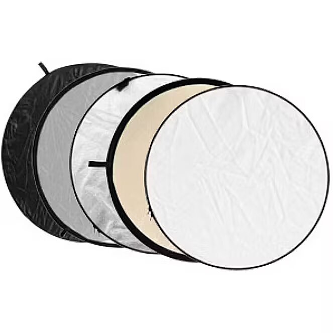 description_short_en - 5in1 reflector with a carry bag White, silver, soft gold, black & transparent sides Can be also used as a light diffuser Practical foldable design Diameter: 80 cm