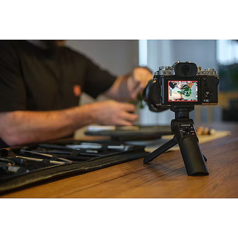 description_short_en - 2in1 grip and tripod Compatible with Fujifilm X-series Rotatable and tiltable head Remote control via Bluetooth Weatherproof design
