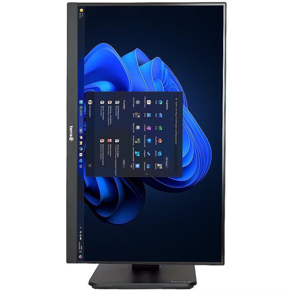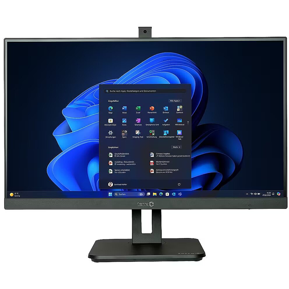 Print Text - TERRA Greenline series | Non-Touch Display 27" (68.5 cm) frameless | Height-adjustable stand with pivot function | Core i5-12400 (max. 4.4 GHz) | 16 GB DDR5 SO-DIMM, 1 TB SSD Gen4 | Intel HD Graphics | WebCam 5MP retractable | GbE-LAN, WiFi 802.11ax, Bluetooth 5.2 | Windows 11 Pro, Microsoft Office trial | (!) w/o keyboard & mouse |