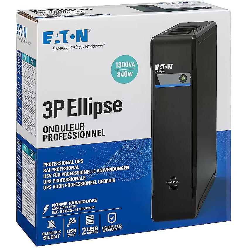 Description - Zasilacz awaryjny UPS 3P Ellipse Zasilacz UPS 3P Ellipse to najnowszy element w portfolio rozwiązań ochrony zasilania Eaton. Elegancki, atrakcyjny design i niemalże bezgłośna praca tego kompaktowego zasilacza UPS przekładają się na wyjątkowe doświadczenia i korzyści ze stosowania zasilania awaryjnego zarówno w domach, jak i małych firmach.