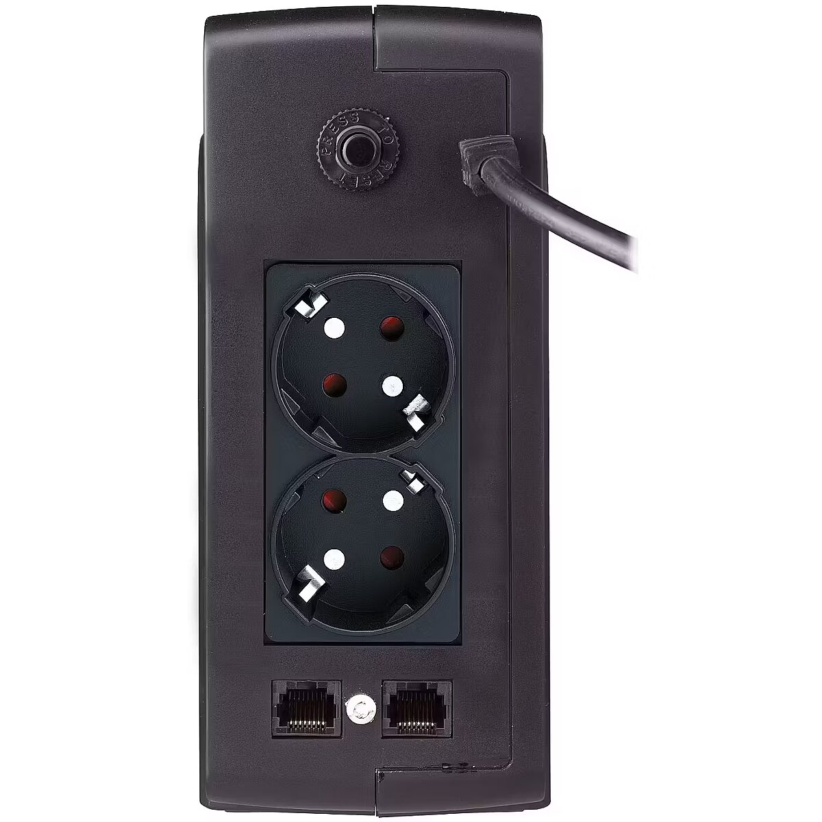 - Self diagnosis to ensure longer battery life Colour black Device Type Standalone UPS Power Rating 600 VA / 300 Watt Input Voltage 170-280 V Buffering Time Full Load: 1 minute(s) Half Load: 7.5 minute(s) Outputs Type 1 2x Schutzkontakt connected to Battery Yes Protection Line Protection: 1x RJ-11/RJ-45 Alert Messages optical: LED for Batteriemodus, Fehler, overload, Batterie fast verbraucht Operating Temperature Charging time to 95% (at half load) 10 hour(s) Output V 230 VAC Operating via Battery: 230 VAC (±10 VAC) Product dimensions 81x185x231 mm Weight 3.1 kg