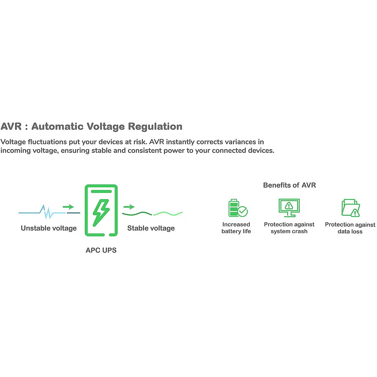 Other features > Special features - Ideal for servers, storage, network cabinets, business VoIP and retail POS; Automatic voltage regulation helps to adjust the electrical voltage