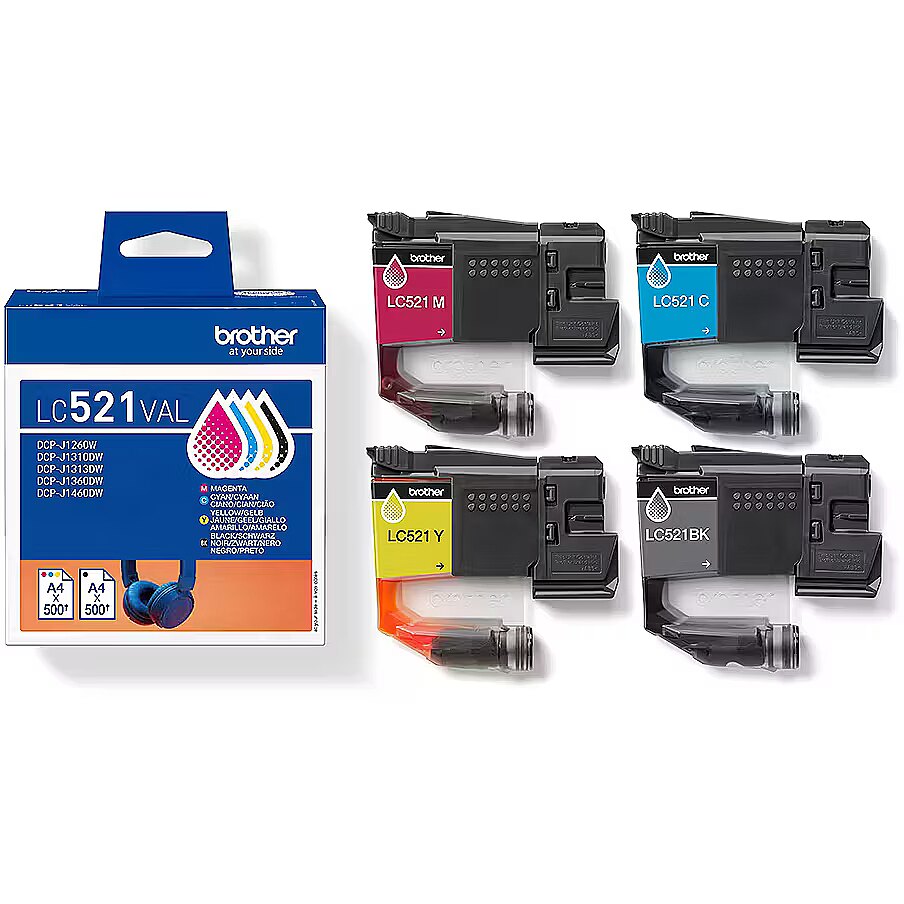 LongProductName - LC521VAL black, cyan, magenta and yellow ink cartridges - multipack. Each cartridge prints 500 pages.