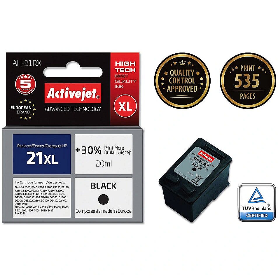 productName - Activejet AH-21RX Ink (replacement for HP 21XL C9351A; Premium; 20 ml; black)