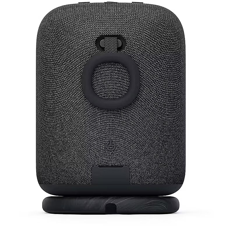 A portable, detachable strap lets you take your speaker with you wherever you go. The IPX4 water resistance rating gives you peace of mind even from splashes. Stylish charging stand