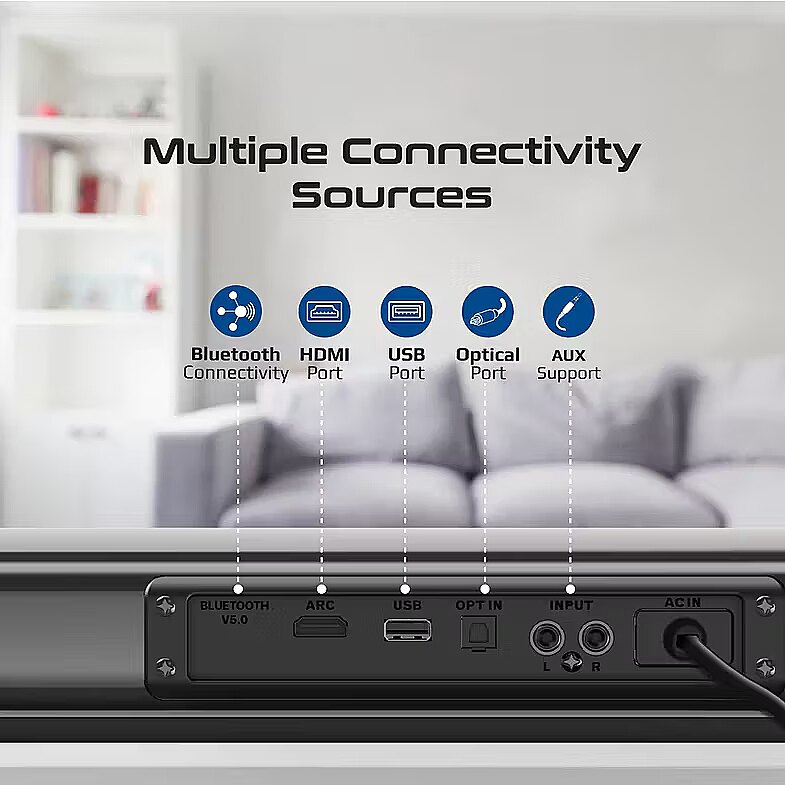 With Bluetooth mode, AUX support, USB Port,HDMI Port and Optical cable input, enjoy multiple connectivity sources