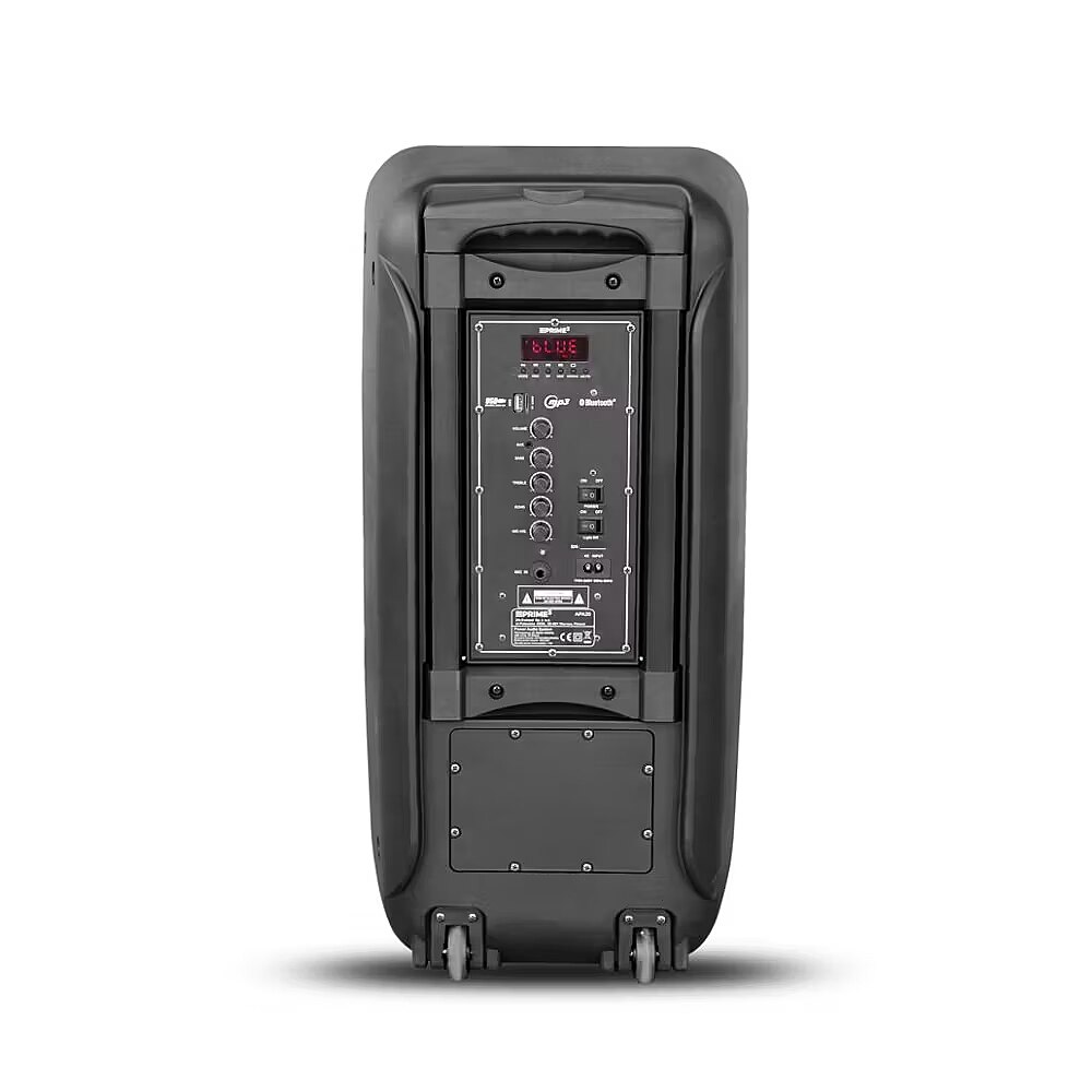 Other features - Power: 8000 W P.M.P.O. GRP function Karaoke function Bluetooth for music playback via audio streaming profile (A2DP) USB/microSD player (max 32GB) MP3/WMA file playback FM radio with station memory Equalizer: Rock, Jazz, Classic, Flat, Pop, Normal Treble and bass adjustment Multi-color LED backlight Built-in battery: 12 V, 4 Ah Mains power: 220-240 V~ 50/60 Hz