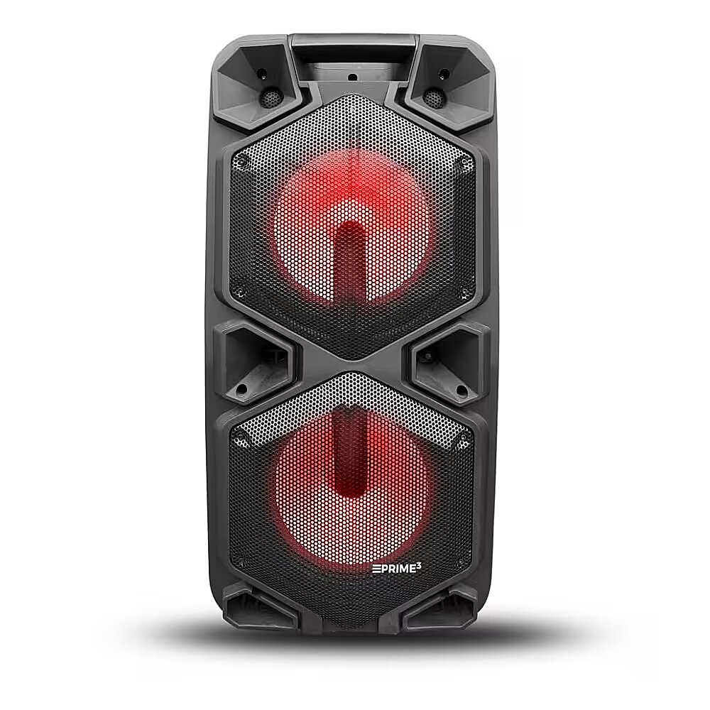Description - PROFESSIONAL AUDIO SYSTEM WITH BLUETOOTH AND KARAOKE FUNCTION APA20 A perfect proposition for both younger people who value good fun and big party people! 8000 W P.M.P.O. GRP function Karaoke function with wireless microphone included When organizing a house party or a garden party, we want the music accompanying the event to sound loud and to be of the highest quality possible. We can achieve this goal with the Power Audio APA20 system from PRIME3. This is a perfect proposition both for younger people who value good fun, and for big partygoers. APA20 has a built-in Bluetooth module, thanks to which it is possible to play music via the audio streaming profile directly from a phone or laptop. Equipping it with an SD card reader and a USB port allows you to listen to your favorite songs from your own playlist saved on a memory card or pendrive, and the AUX input allows you to connect the system to an MP3 player, an older computer or a CD player. If we do not have any portable device with music files or a Bluetooth module, thanks to the built-in FM tuner, we can tune in to our favorite radio station and still listen to music. The powerful sound and high sound quality are due to the high power of the speaker, which is 8000 W P.M.P.O. This value, combined with the appropriate configuration of functions, guarantees an extraordinary musical experience. Equipping the system with the TWS (True Wireless Stereo) function enables wireless connection of APA series speakers. This means that music can be played simultaneously from 2 APA20 speakers. Thanks to this configuration, we can obtain excellent quality stereo sound that can really surprise you. The karaoke function with a 6.5 mm microphone jack used in all professional sound systems, an additional wireless microphone and multi-color LED backlight are functions that will spice up any social gathering. Singing together in the spotlight is great fun for both children and adults. However, the loudspeaker will work not only during karaoke games, but also in any situation in which we want to be heard by a larger audience, e.g. at meetings, matches, in a lecture hall or during a school assembly. Thanks to the built-in battery, the device can work both in wireless mode and after connecting to the mains power supply. The use of batteries allows you to take the speaker outdoors and organize a fantastic party also outdoors. The integration of many functions in one housing makes the Power Audio APA20 system an ideal alternative to all types of towers and classic devices with separate loudspeakers.